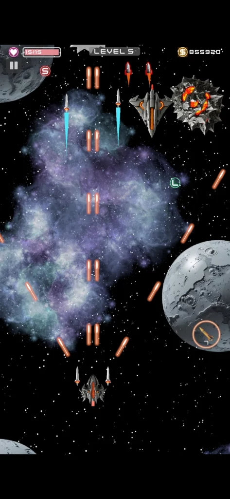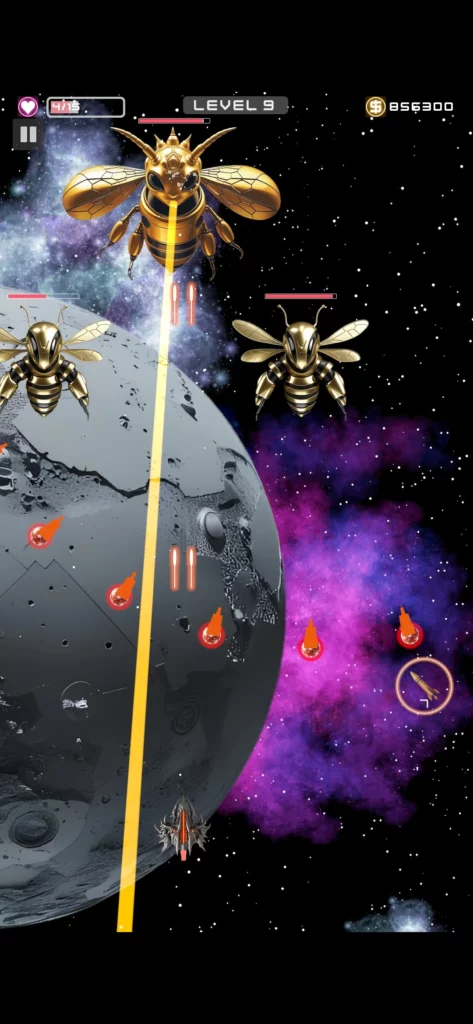 In the game, you are tasked with piloting a spaceship and shooting down numerous enemies that gradually surround you, including dangerous enemy bosses. In each level, you can collect various weapons and collect coins to buy ships with increasingly higher capabilities.